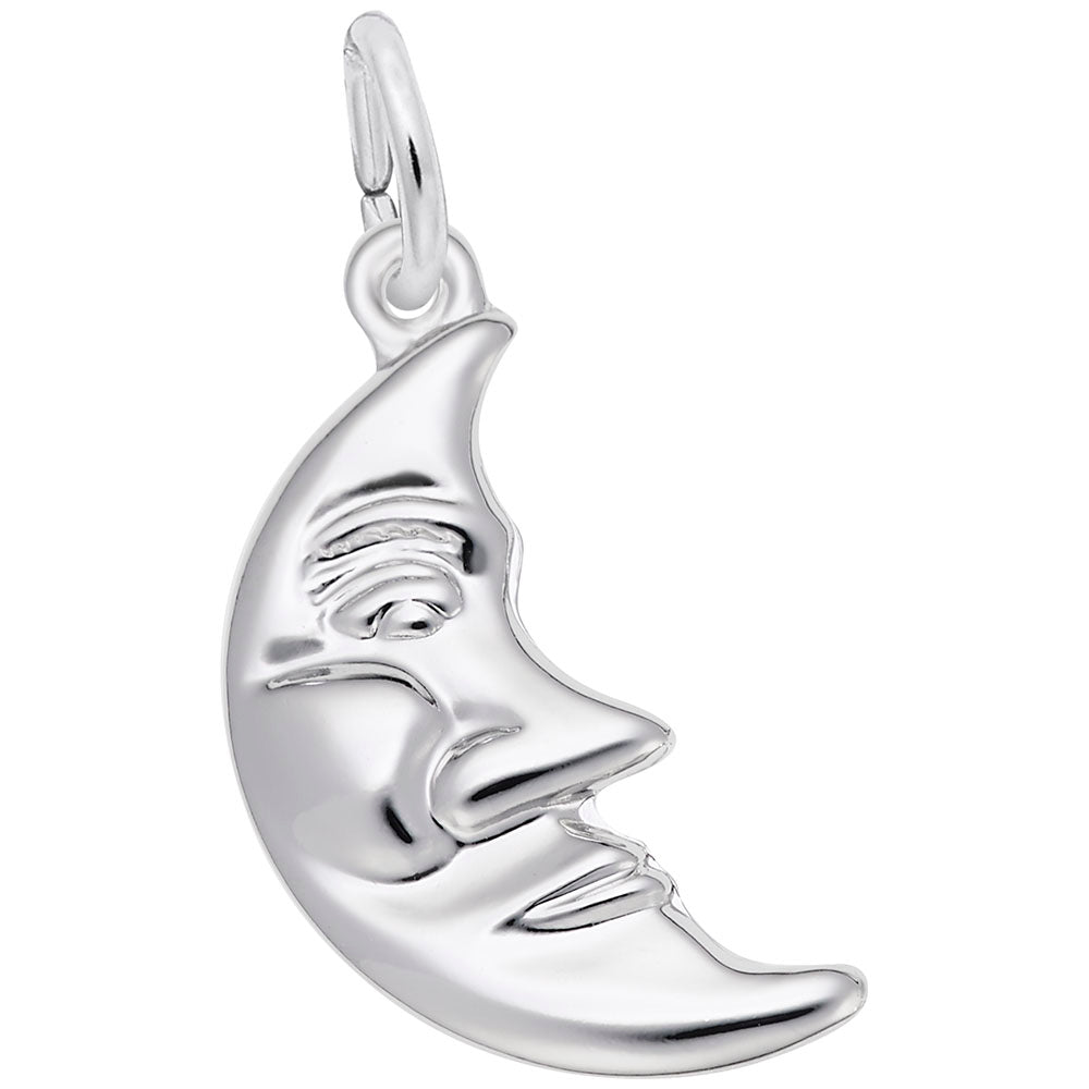 Embrace celestial elegance with this Half Moon with Face Charm, crafted in your choice of 10k yellow gold or rhodium-plated sterling silver or gold plated sterling silver. Measuring approximately 10.62 x 19.11mm, this beautifully detailed design captures the timeless mystique of the moon, symbolizing guidance, dreams, and transformation.