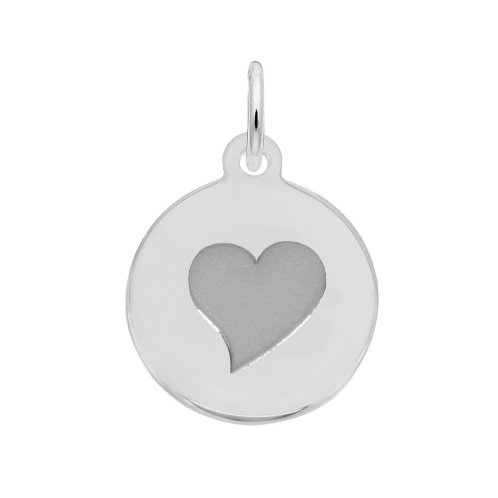 Celebrate love and individuality with this personalized disc heart charm, available in your choice of elegant rhodium-plated sterling silver, classic gold, or sterling silver with a gold-plated finish. Measuring approximately 12.44 x 12.44mm, this piece features a delicate cut-out heart design at its centre, making it a timeless and meaningful addition to any collection.