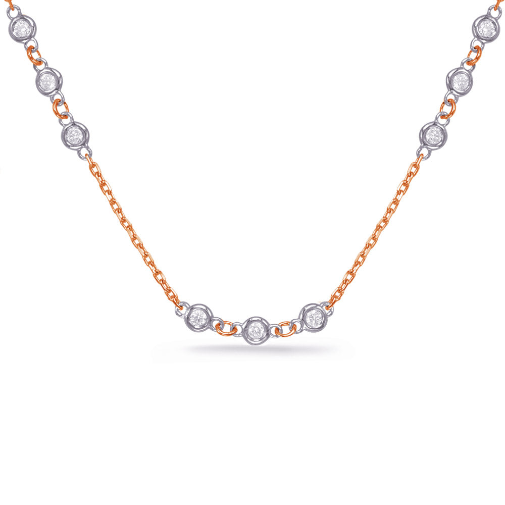 This 14kt gold necklace is available in White, Yellow or Rose gold. It features a total of 30 round natural diamonds with a very good cut with an approximate total carat weight of 0.89ct. Of SI1 Clarity and G Color, The diamonds are set in a Bezel Set setting, showcasing their brilliance and elegance. With a modern and fashionable design, this necklace measures 18 inches in length, making it a versatile accessory that complements any style.