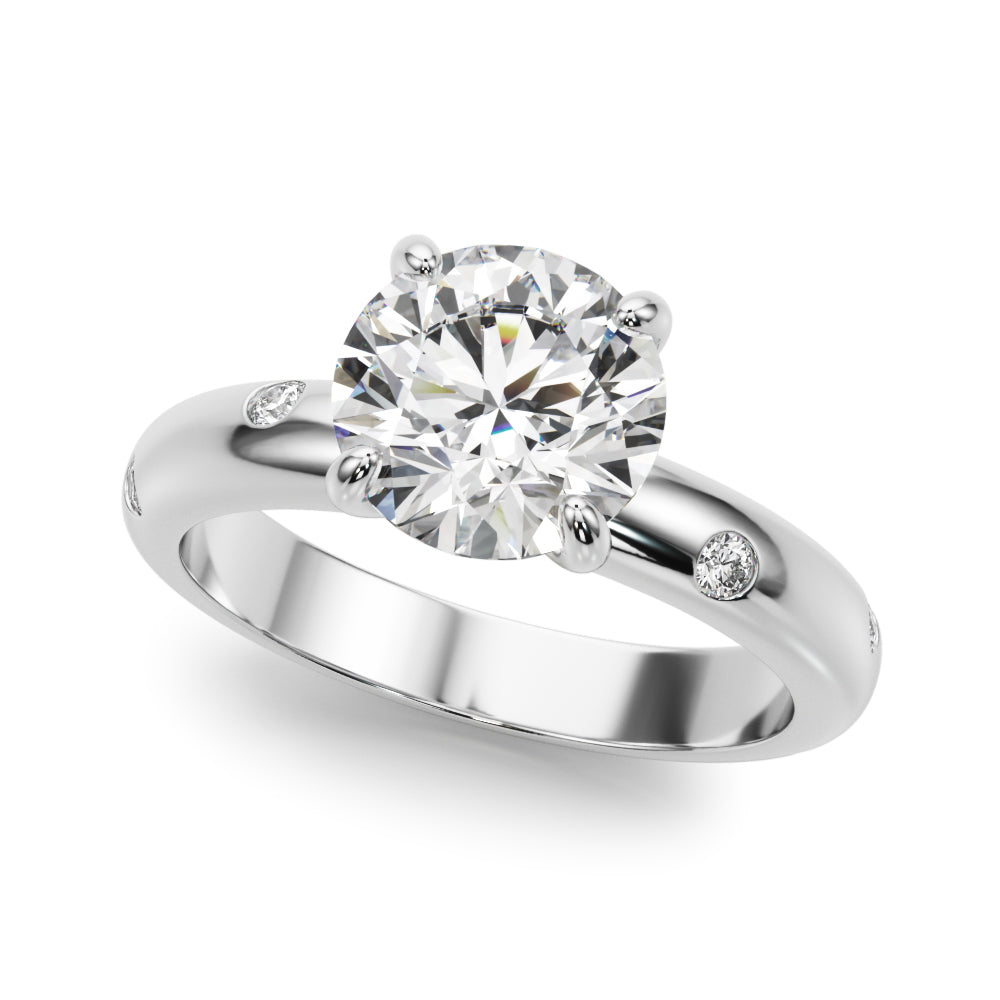 1.00CT 14K Round Brilliant Cut Solitaire Ring with Gypsy Set Side Diamonds
