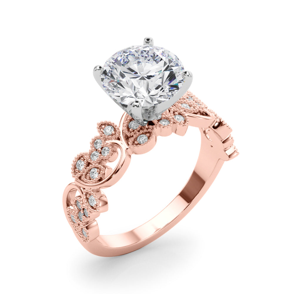 1.00CT 14K Unique Vine Style Design Mount with Millgrain Accent