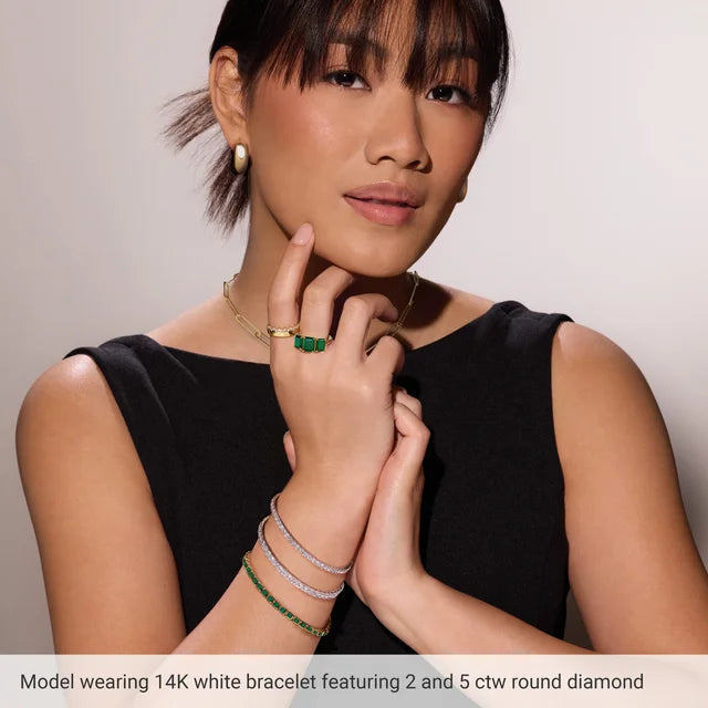 This 14K Gold Classic Diamond Tennis Bracelet offers timeless elegance and brilliant sparkle. Crafted in your choice of white, yellow, or rose gold, this elegant hand crafted design features your choice of diamonds with a starting carat weight from approximately 2.00ctw., all the way to over 10.00+ctw., mounted with beautifully cut round brilliant diamonds, and available with your choice of natural diamonds or lab grown diamonds.