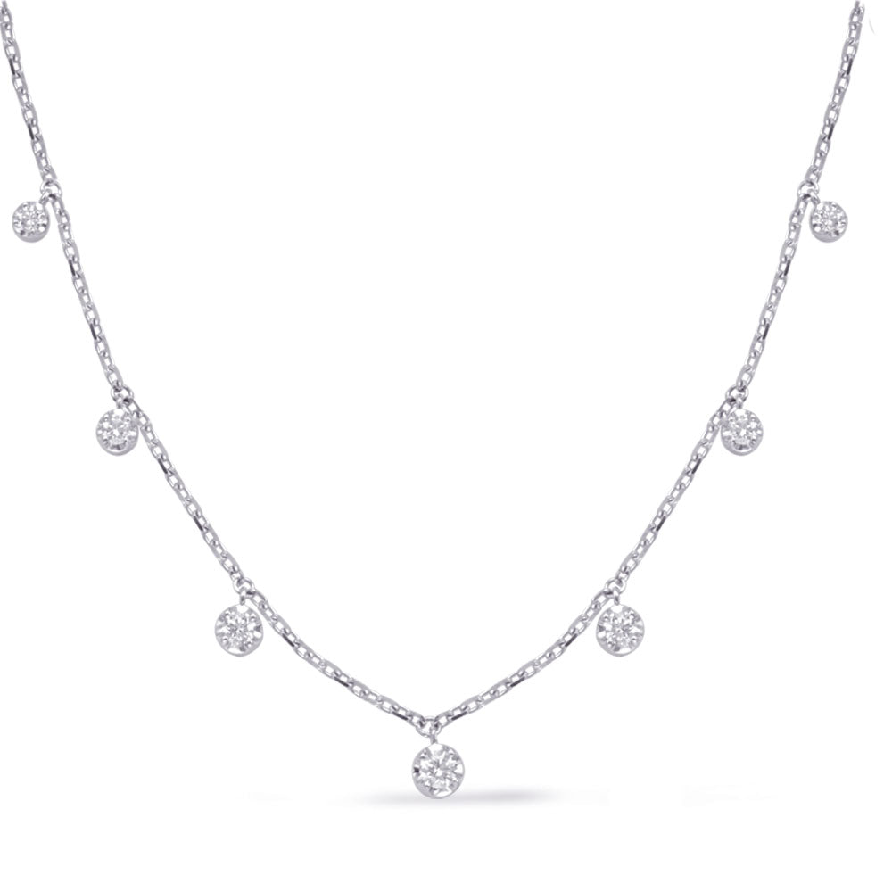 This 14kt gold necklace is available in your choice of White, Yellow or Rose gold. It features a total of 7 round natural diamonds with a very good cut with an approximate total carat weight of 0.40ct. of SI1 clarity and G color. This necklace measures approximately 17 inches in length, making it a versatile accessory that complements any style.