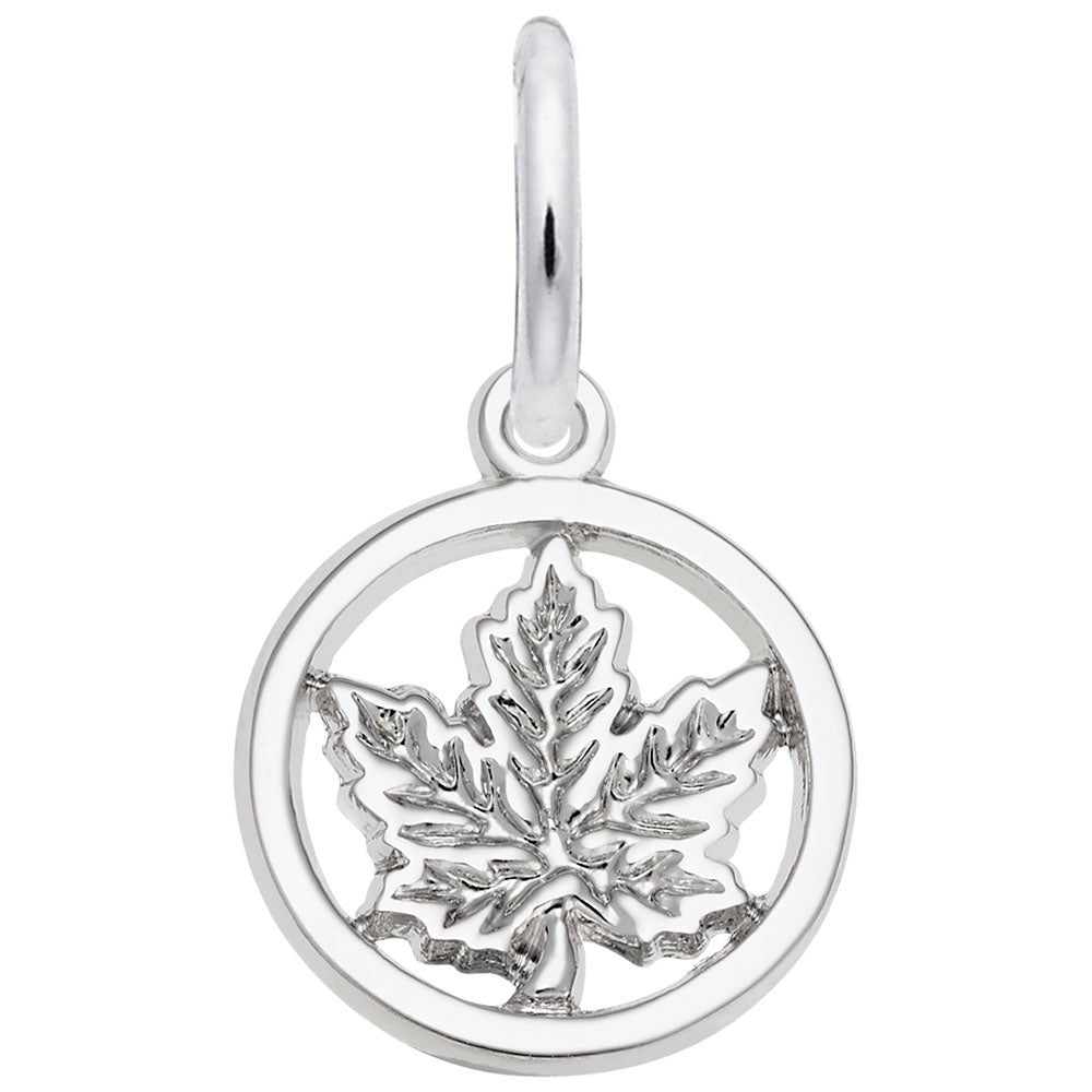 This Ringed Maple Leaf Charm is a beautiful emblem of Canadian pride, thoughtfully crafted in your choice of 10K yellow gold, rhodium-plated sterling silver, or gold-plated silver. The open circle design frames the intricately detailed maple leaf, making it both a symbolic and stylish piece to wear or gift.
