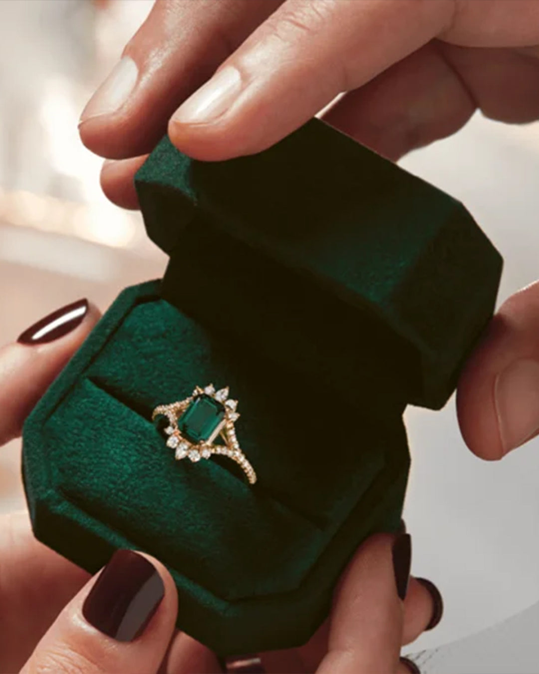 Diamonds will always have their place, but coloured gemstones are stepping into the spotlight. Sapphires, emeralds, rubies, and rare stones like alexandrite are becoming the centrepiece for couples seeking individuality. Each gemstone carries its own personality, deep blue sapphires evoke royalty, green emeralds radiate elegance, and alexandrites surprise with their colour-changing magic. Across Canada, these vibrant stones are being set in both minimalist designs that let the colour speak and ornate settings that highlight their uniqueness.